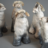 Pour donner vie à ce qui naît de mes mains, je prépare à l’avance de petits éléments (yeux, bois, cornes, plumes) en grès ou porcelaine, que je cuis à haute température.