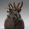 Je travaille à La Belle Etoile, entourée d’arbres et d’animaux. Travailler l’argile et le feu, c’est peut-être pour me rappeler qu’autrefois, nous, humains, portions un regard différent sur nos cousins sauvages : respect, bienveillance, fraternité du vivant… Toutes choses à faire revenir au monde pour oser imaginer des lendemains moins désenchantés.