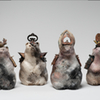 Pour donner vie à ce qui naît de mes mains, je prépare à l’avance de petits éléments (yeux, bois, cornes, plumes) en grès ou porcelaine, que je cuis à haute température.